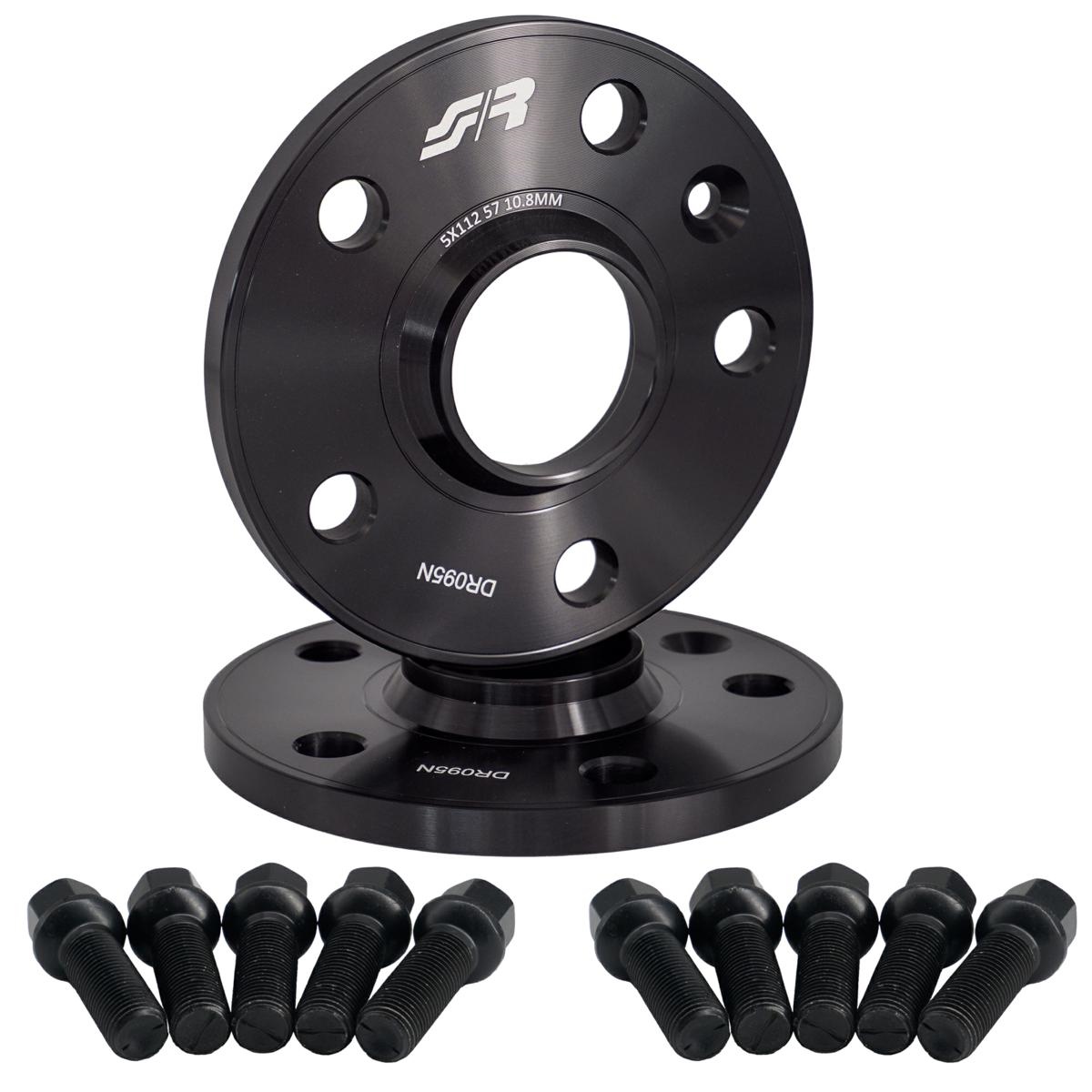 2 distanziali ruota neri 10mm 5x112 57,1 con bulloneria sferica